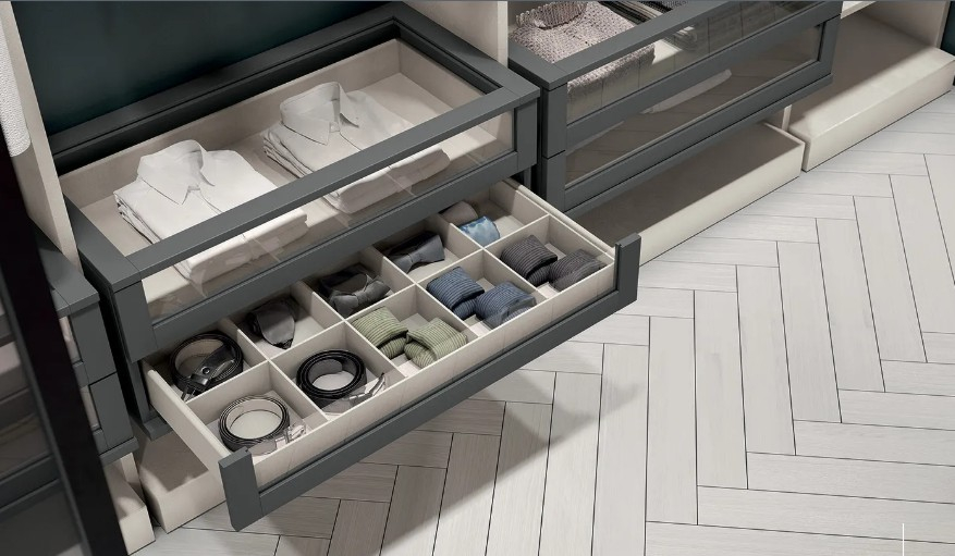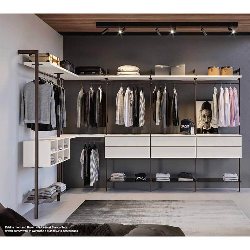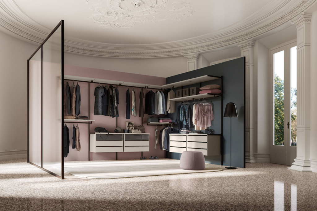 FLEXO è il sistema componibile e flessibile che ti permette di configurare la tua cabina armadio come vuoi e dove vuoi: grazie ai suoi numerosi accessori e al meccanismo di controspinta, si fissa perfettamente ad ogni parete, sia in appoggio che in divisione, occupando in altezza tutto lo spazio necessario senza lasciare antestetici vuoti tra il soffitto e la struttura.