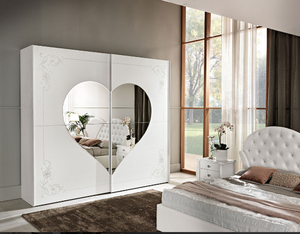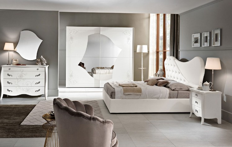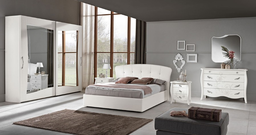 Marlene, gruppo della zona notte dal carattere romantico, nella finitura frassino bianco.