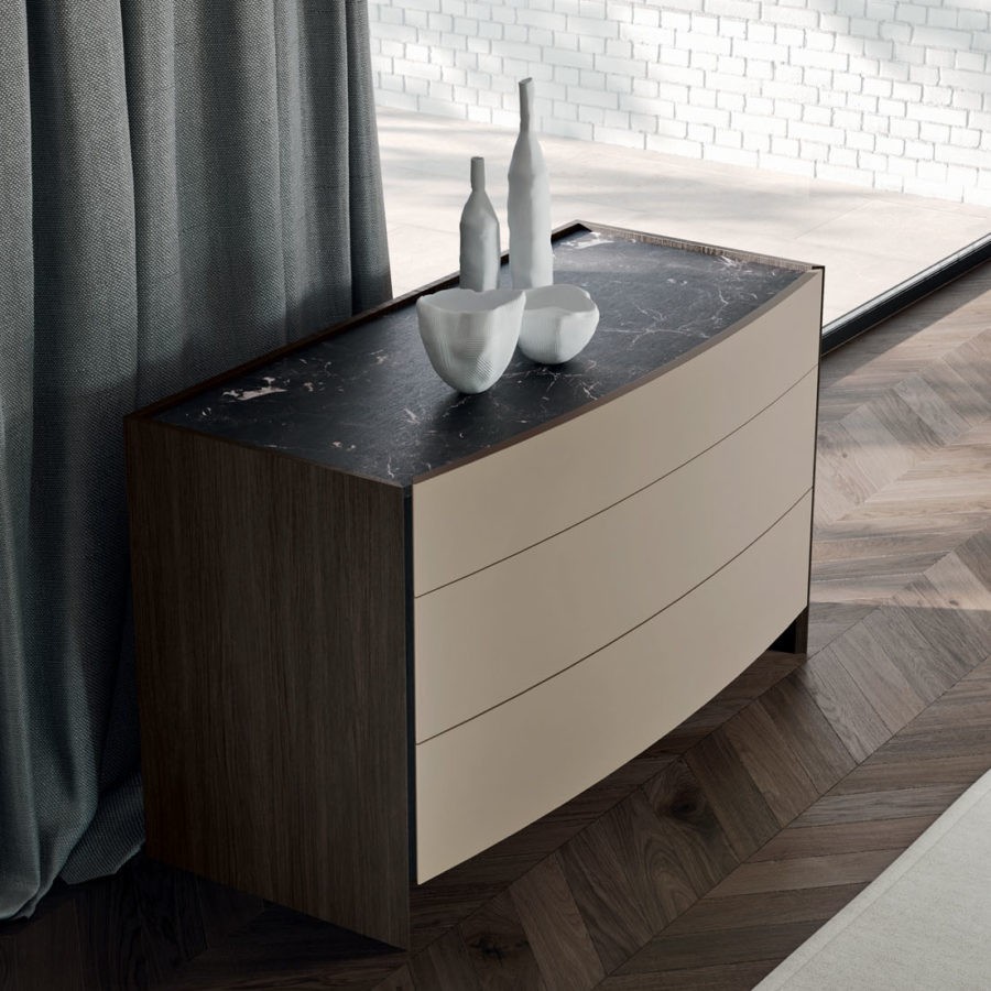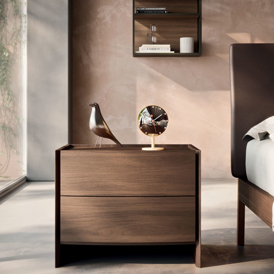 Camera da letto Botero. Simmetria e sobrietà le caratteristiche del letto Ofelia, concepito in chiave romantica si propone anche in versione imbottita avvolto da un giroletto in legno con piedini personalizzabili a seconda del gusto. Il gruppo Onice accompagna l’ambiente notte con semplicità e leggerezza, mentre il gruppo Botero rafforza con le sue linee sinuose la tranquillità degli spazi domestici privati.