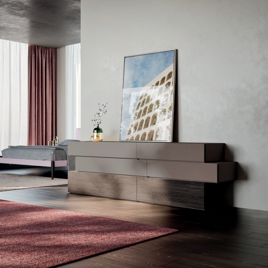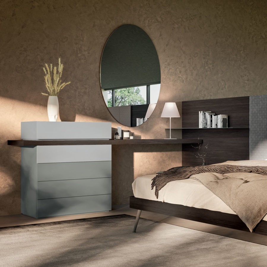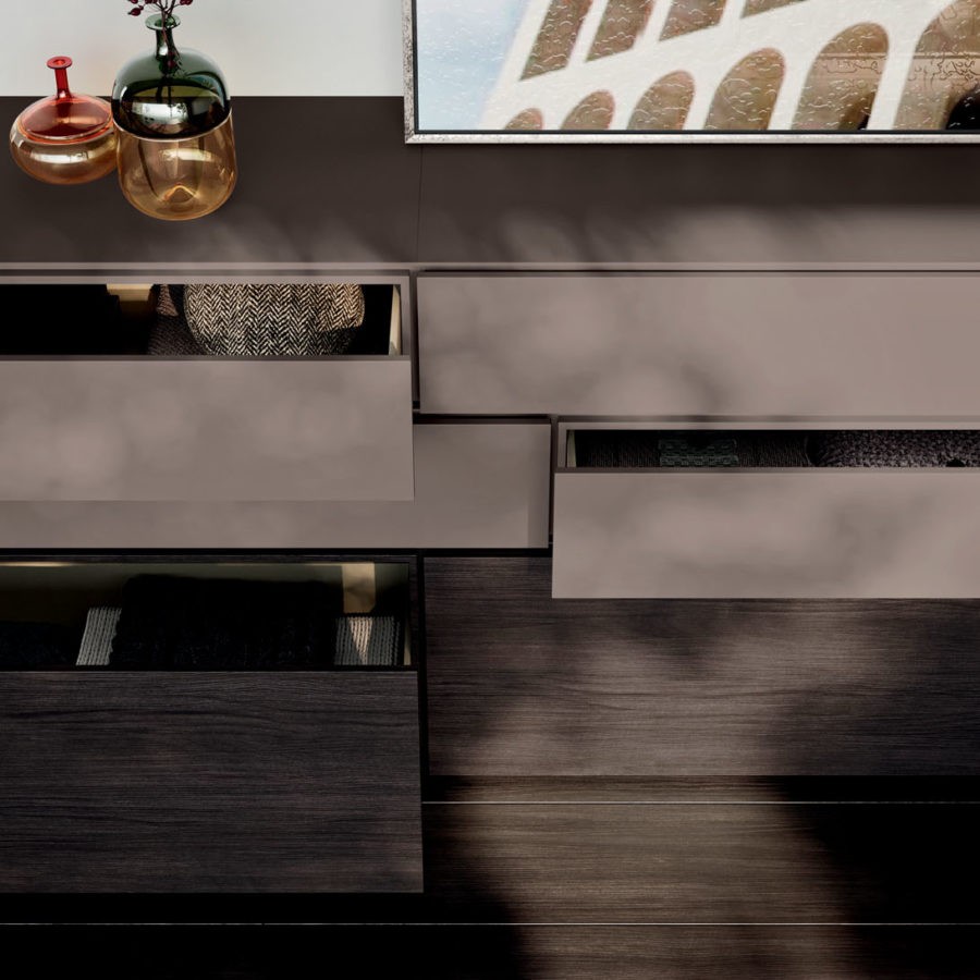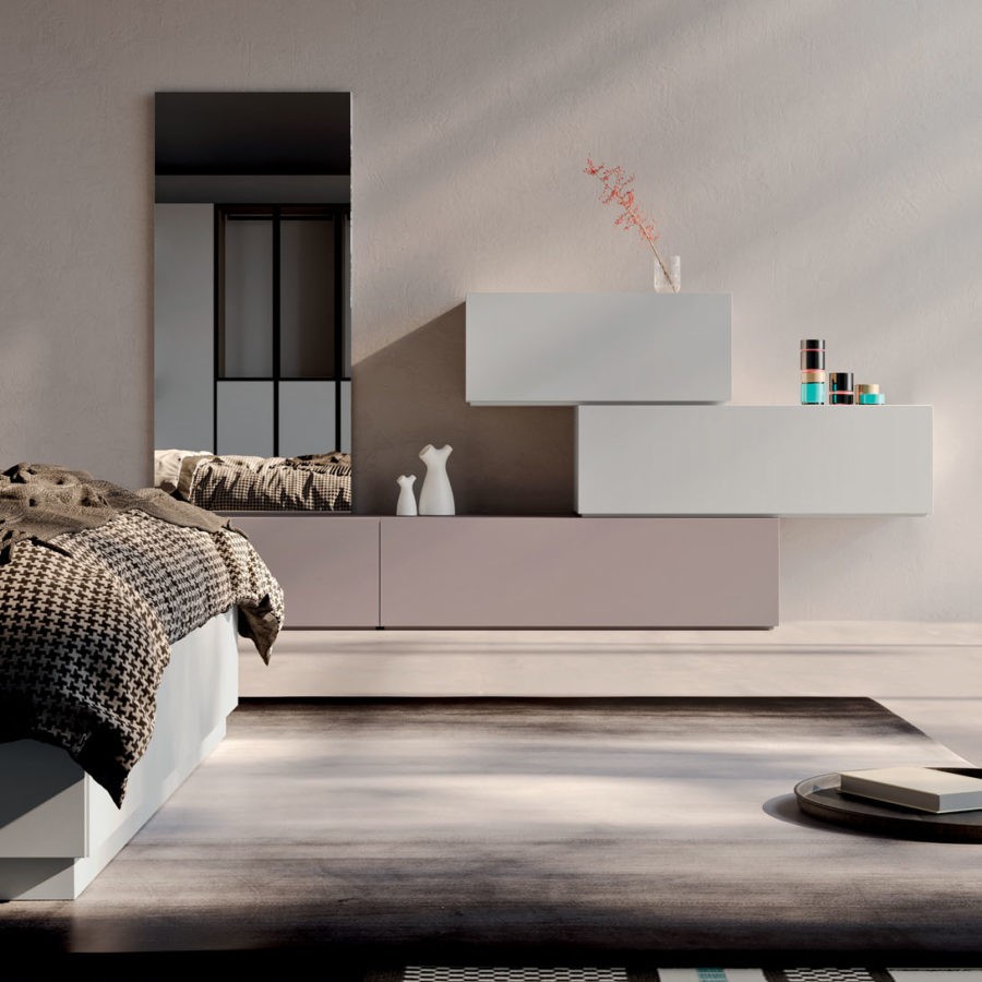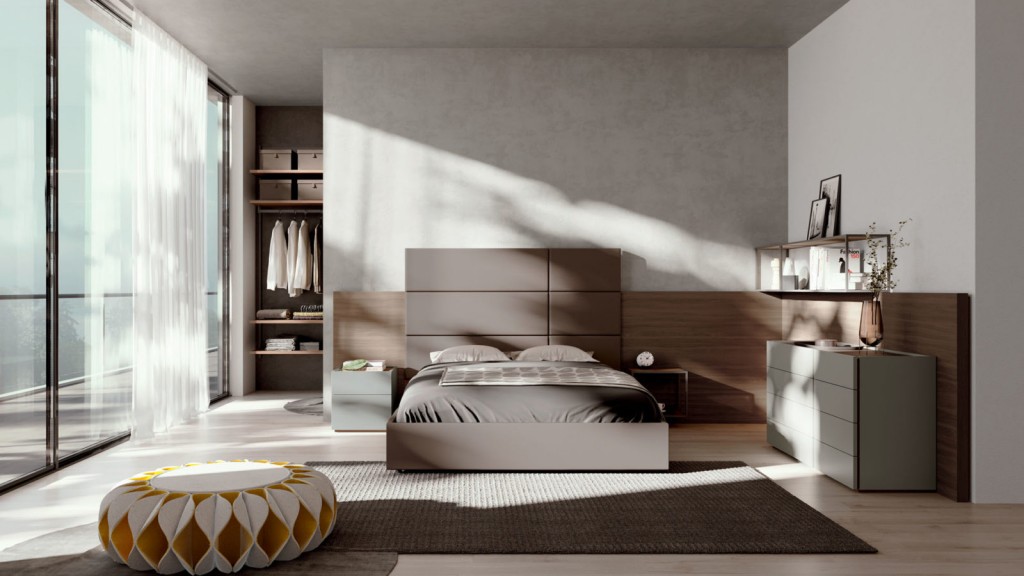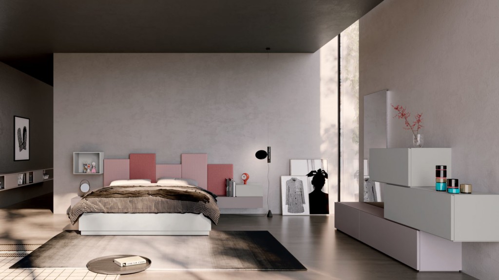 Versatile e personalizzabile, la camera Compongo si propone come sistema componibile di basi a terra, pensili in appoggio e pensili caratterizzati da una lavorazione sul fusto che permette un agevole apertura dei frontali.
