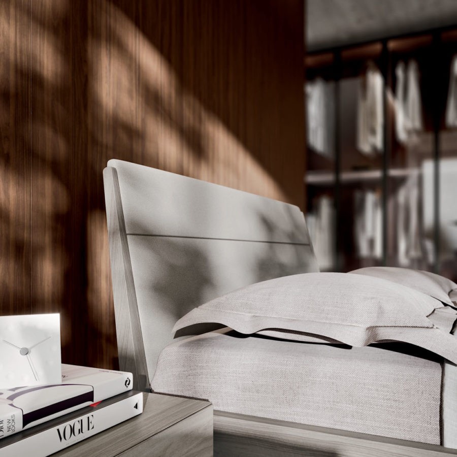 Pensato per un ambiente minimale e raffinato, la camera Ilo si propone con delle forme morbide che mettono in risalto i toni delicati e naturali delle essenze legno. Disponibile vestito di una testiera imbottita viene accostato al gruppo Clip donando un carattere fortemente essenziale e sobrio alla zona notte.