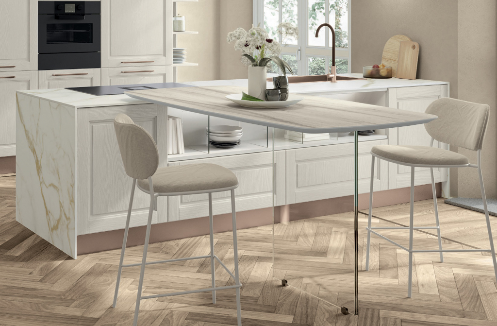Ritrovarsi nel luogo più accogliente della casa, pieno di profumi e bei ricordi. Riunirsi con parenti e amici per vivere momenti di genuina convivialità e riscoprire insieme le cose semplici dei tempi passati, sotto il segno dell'ospitalità. Un progetto concreto per chi ha gusti romantici. La scelta del legno massello, materiale antico, prezioso e robusto, si declina in differenti finiture per accontentare i gusti più esigenti e durare a lungo nel tempo.
