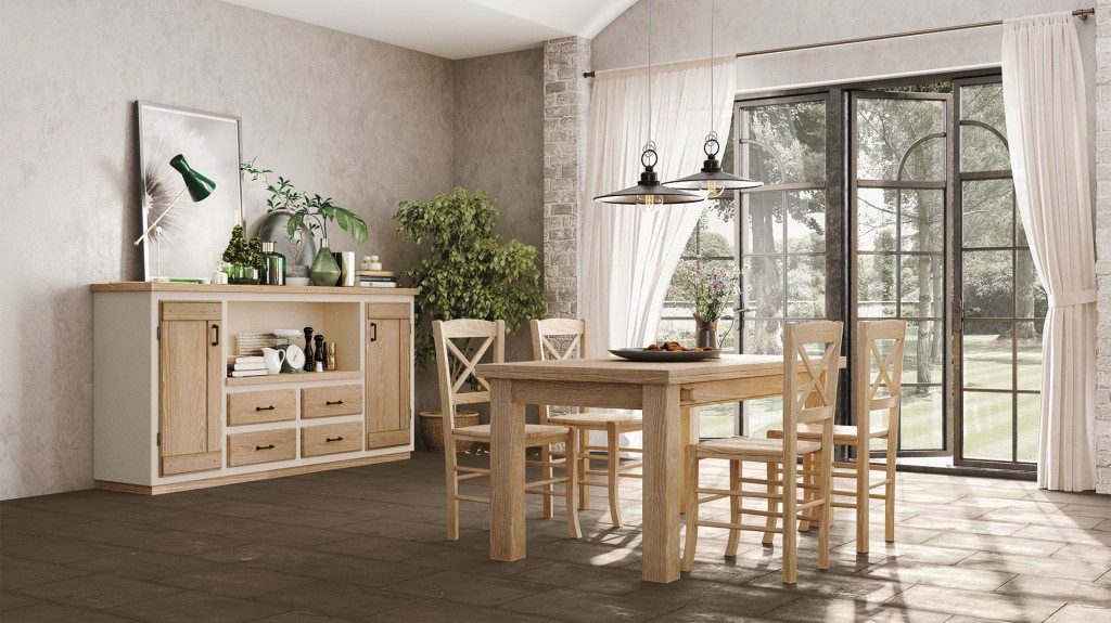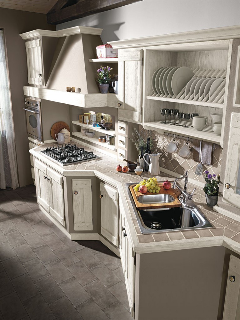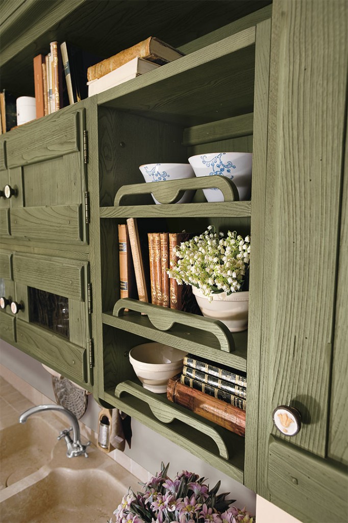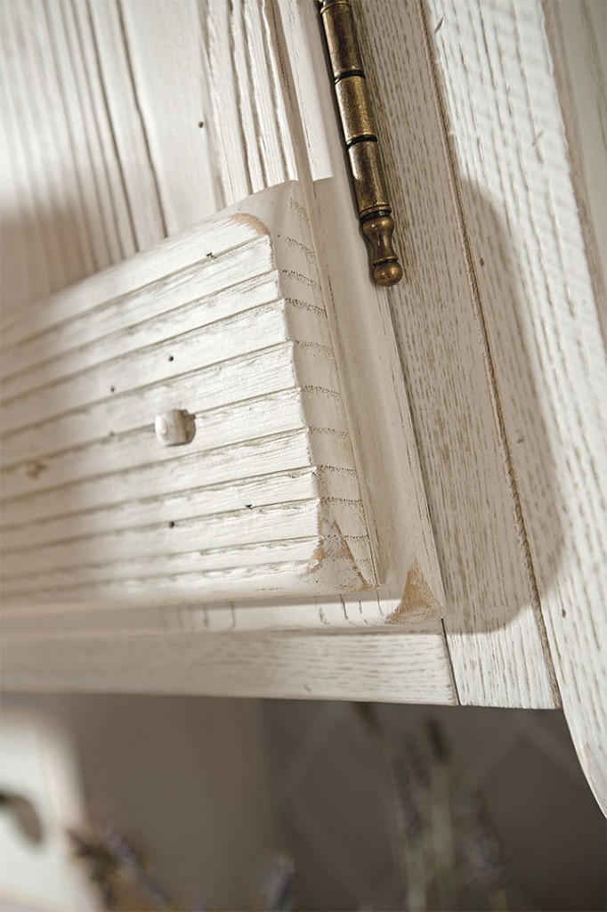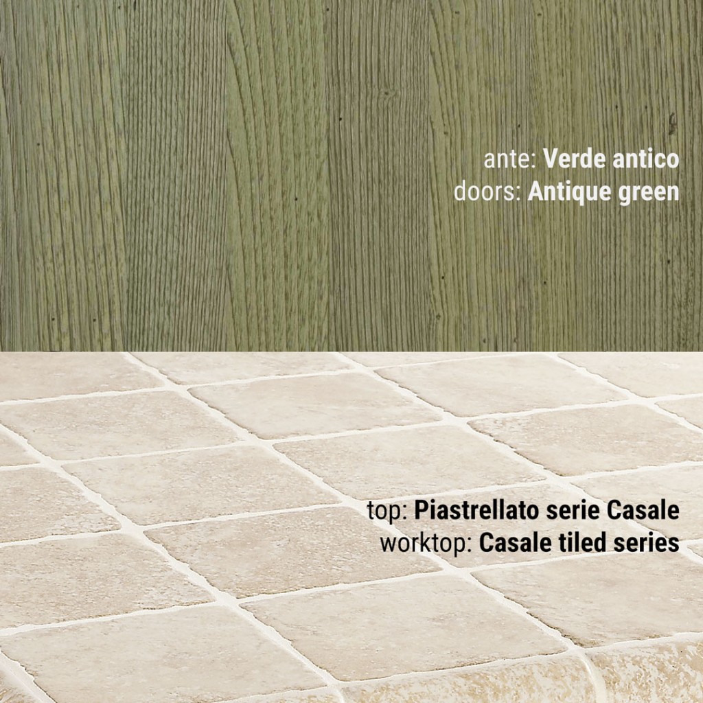 Anita, cucina in finta muratura, è realizzata interamente in legno di castagno anticato e spazzolato. L’anta si presenta con uno spessore di 32 mm, pannello centrale liscio, telaio con motivo a listoni sovrapposti, fissati lateralmente da finti chiodi. Le venature del legno percorrono il pannello centrale dell’anta in senso verticale, mentre si alternano nel telaio, creando così un leggero movimento che, per effetto dei processi di spazzolatura ed anticatura, permette di apprezzare ancor più la bellezza del castagno. Anita riporta alla memoria le suggestioni di un passato fatto di cose concrete che continuano a rivivere in tutti coloro che scelgono la sua semplicità e bellezza.