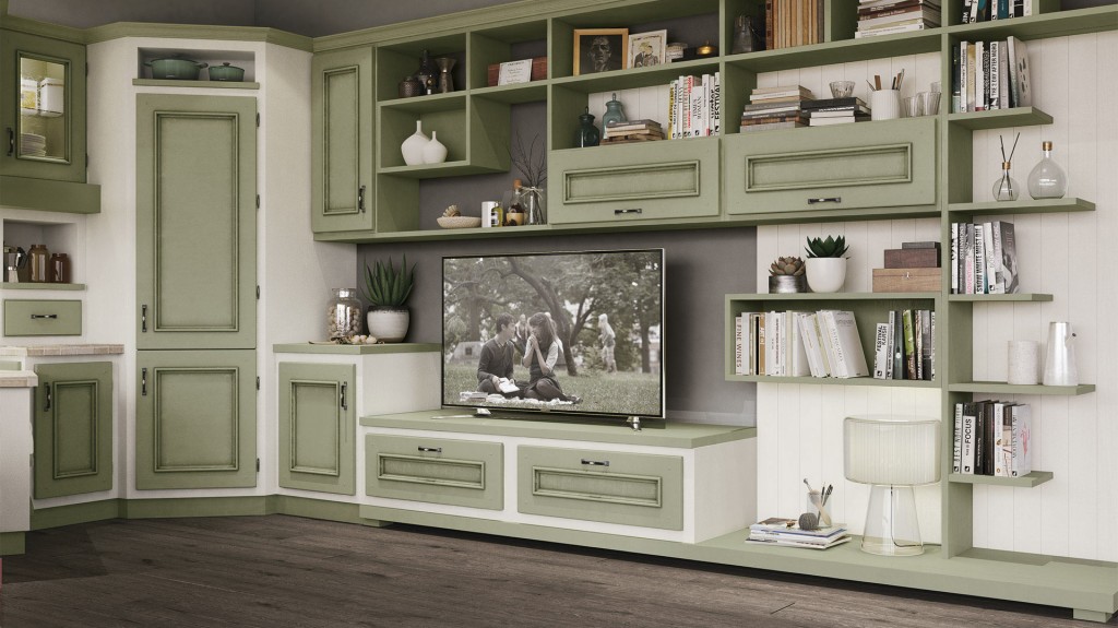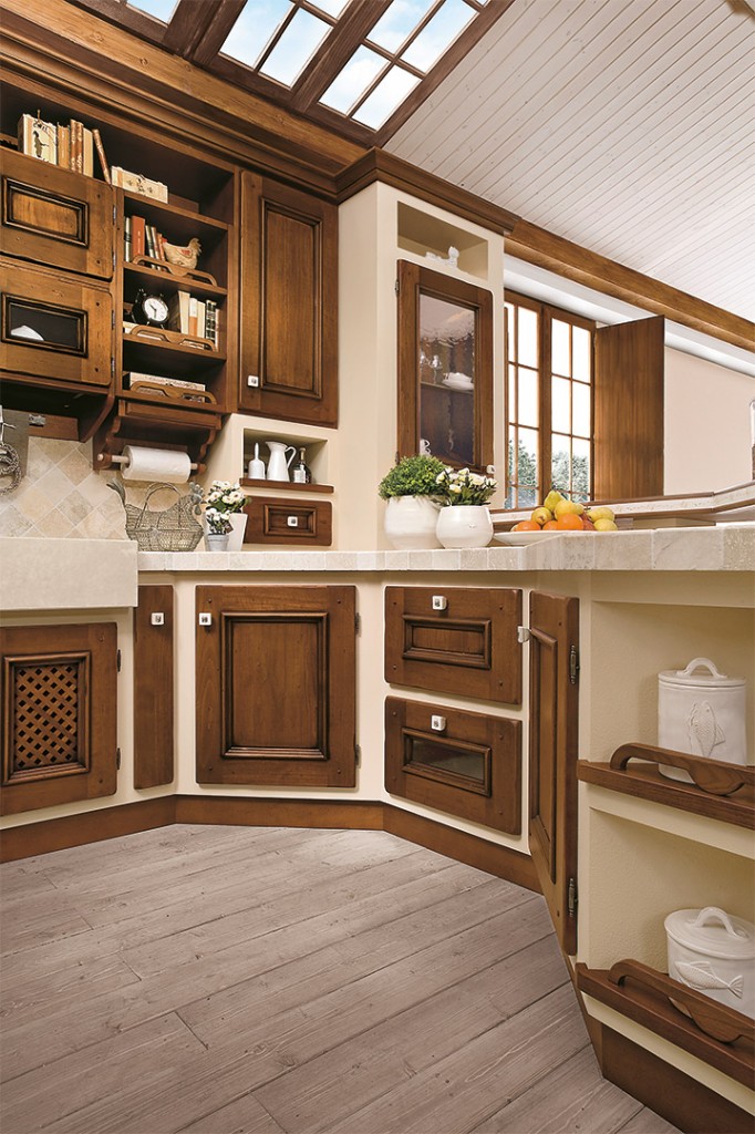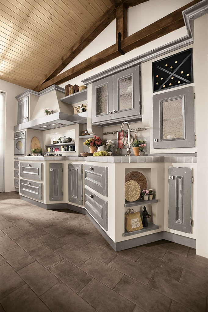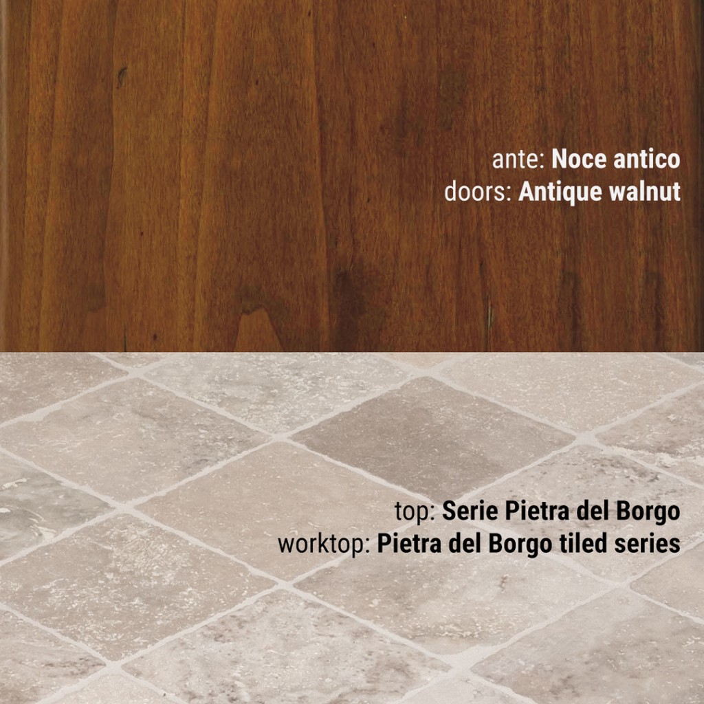 Beatrice racchiude l’immagine di una cucina dal sapore romantico. L’anta in massello di pioppo ha una cornice centrale messa in risalto da finti chiodi posizionati alle estremità degli angoli. Le finiture laccate insieme al noce antico ripropongono i colori della tradizione: caldi e importanti al tempo stesso evocano le atmosfere dei vecchi granai, le sensazioni di unione e ristoro delle famiglie di una volta, quando le giornate trascorrevano lentamente e ogni cosa veniva degustata nella sua essenza.