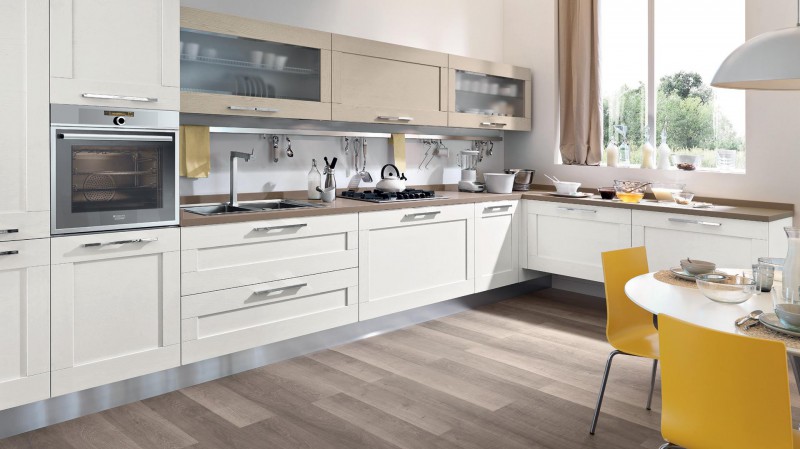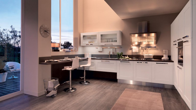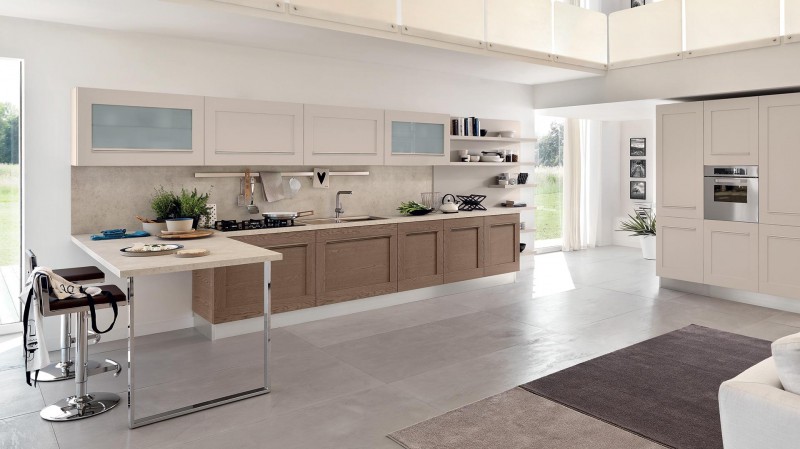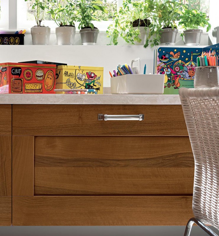 Una cucina con anta a telaio caratterizzata da un design moderno, che può essere interpretata in una unione perfetta di suggestioni romantiche e tratti minimali. Le essenze sono le più attuali, nelle calde tonalità dei Roveri, dei Frassini e del Noce. Una palette di colori tenui o brillanti, lucidi ed opachi che, abbinate alle ante lisce o decorate, rende Gallery capace di esprimere tutta la sua versatilità. Una rivisitazione moderna di tradizioni antiche per l’anta con la maniglia integrata e la presa stondata, che caratterizza la linea trasformandosi in elemento decorativo, intercambiabile con diversi tipi di maniglie a seconda delle preferenze. Gallery, una cucina senza tempo.