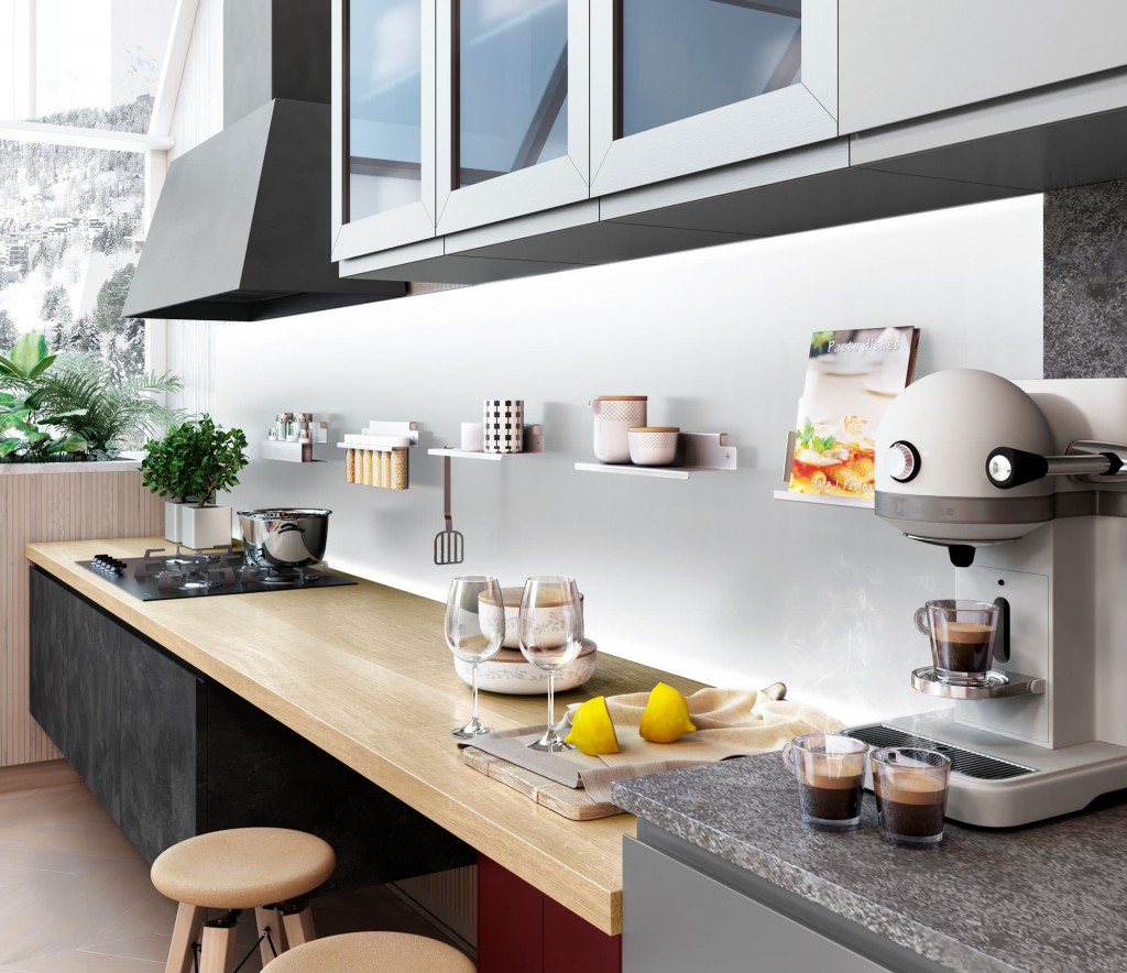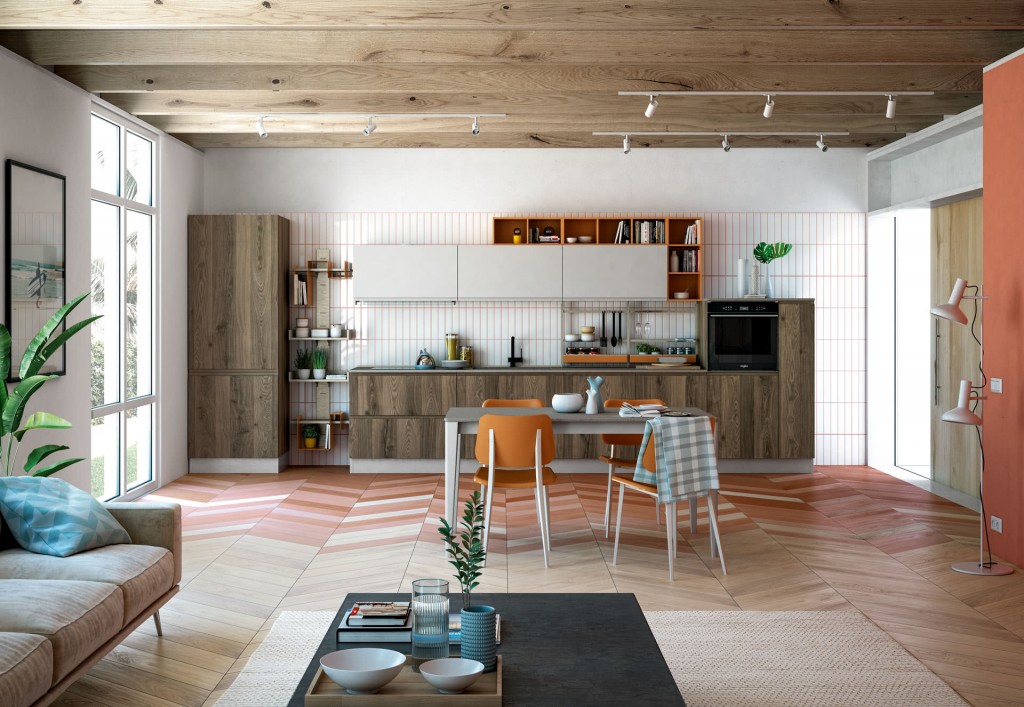 Come un’emozione, preziosa e luminosa, con sensazioni iridescenti, nuances delicate e nuovi decorativi materici gradevolissimi al tatto. Jey feel è una cucina moderna che si apre con naturalezza al living definendo la sua anima urban chic. Valorizza e personalizza ogni spazio grazie alle combinazioni di legni effetto materico, legni effetto stone e marmo opaco per basi, colonne e piani di lavoro.