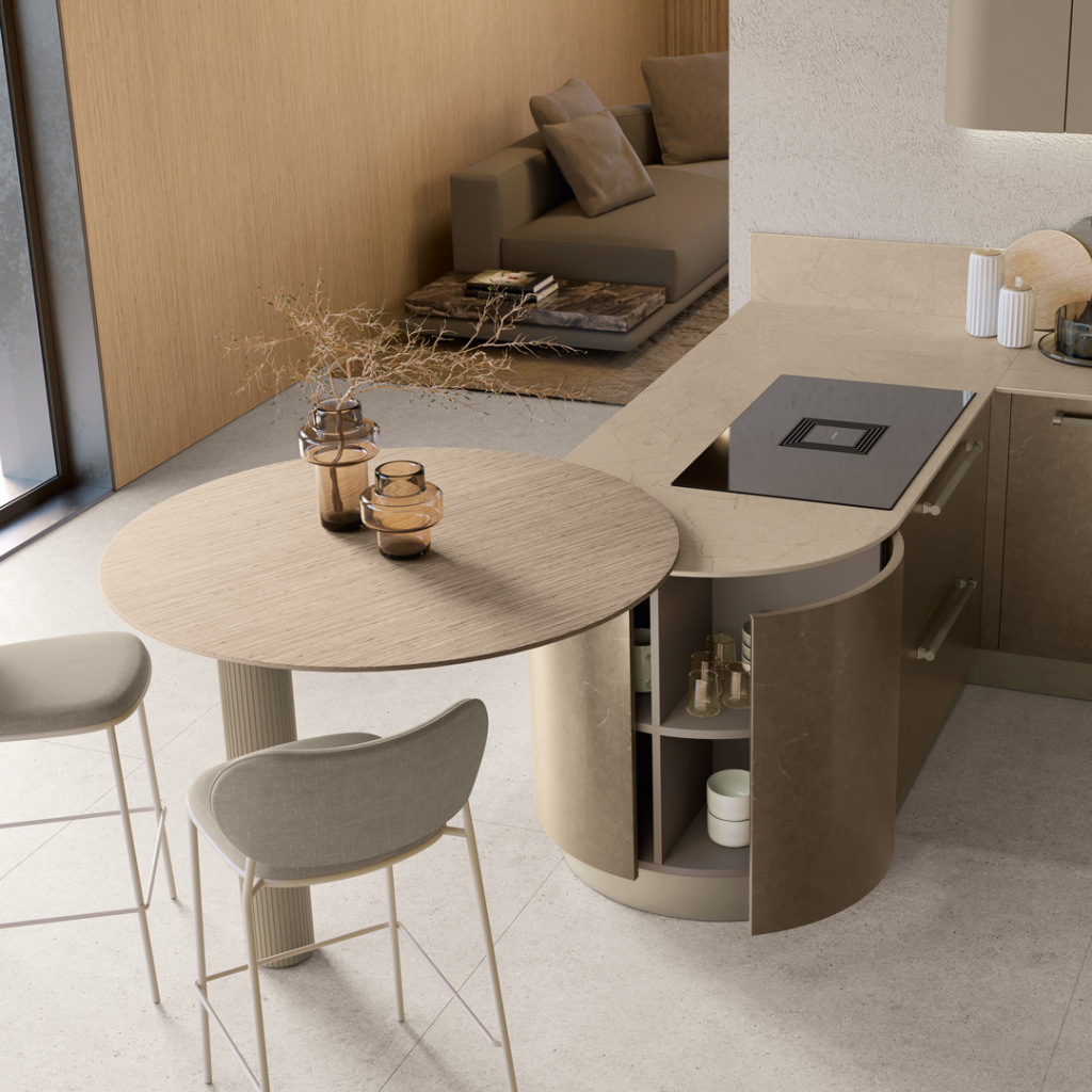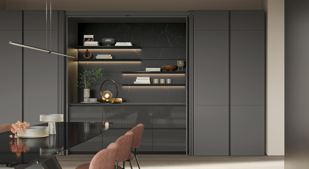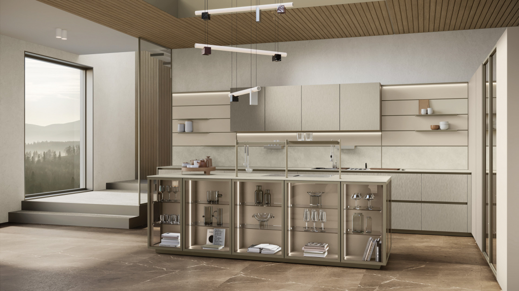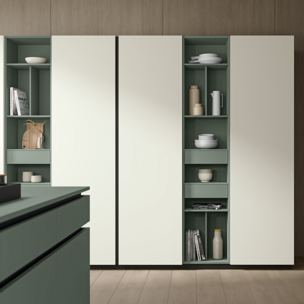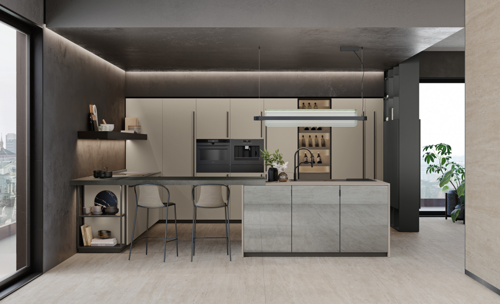 La cucina Shade Lab di Lube è un modello di cucina moderna e sofisticata, caratterizzata da un design modulare, linee pulite e finiture ricercate come le ante laccate super opache con texture effetto trama o le ante lisce. Offre un'elevata personalizzazione grazie al sistema modulare e alle diverse opzioni di ante curve, Rain e Rain Mix, e vetrine illuminate. Shade Lab unisce estetica e funzionalità, proponendo soluzioni come isole centrali e il sistema MASK per un effetto minimale, puntando a creare un ambiente conviviale e personalizzato.