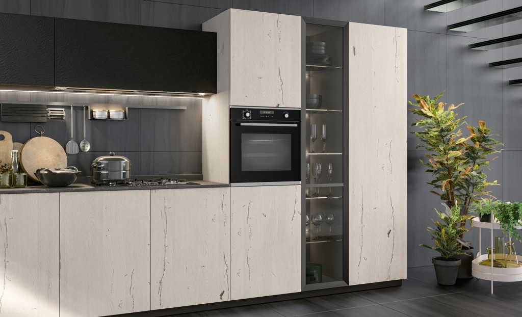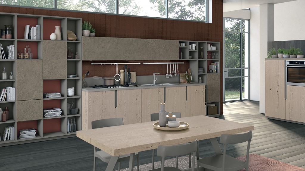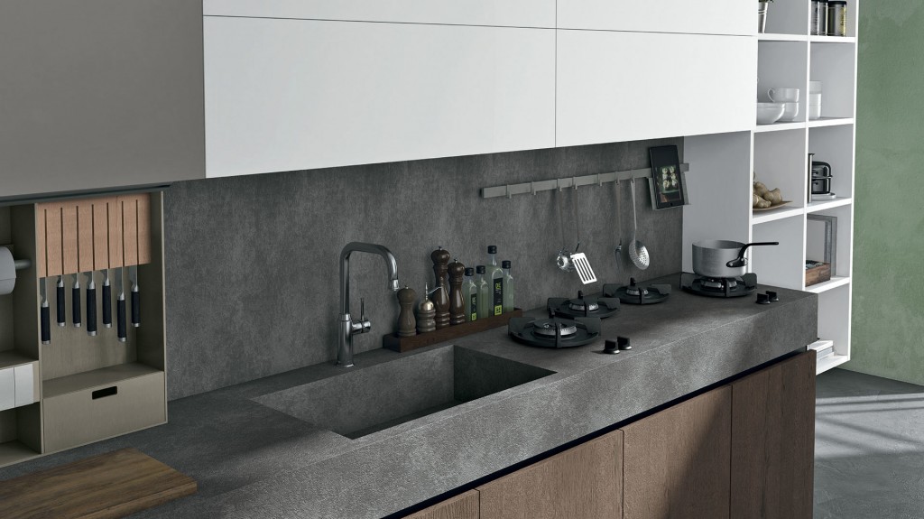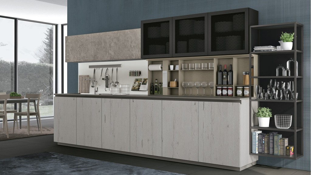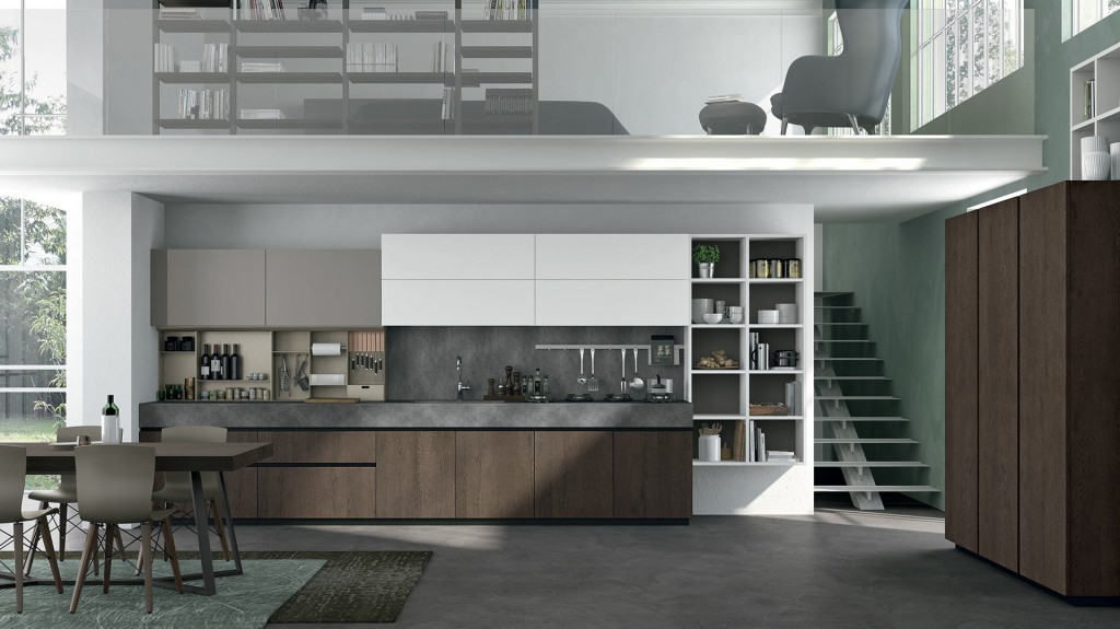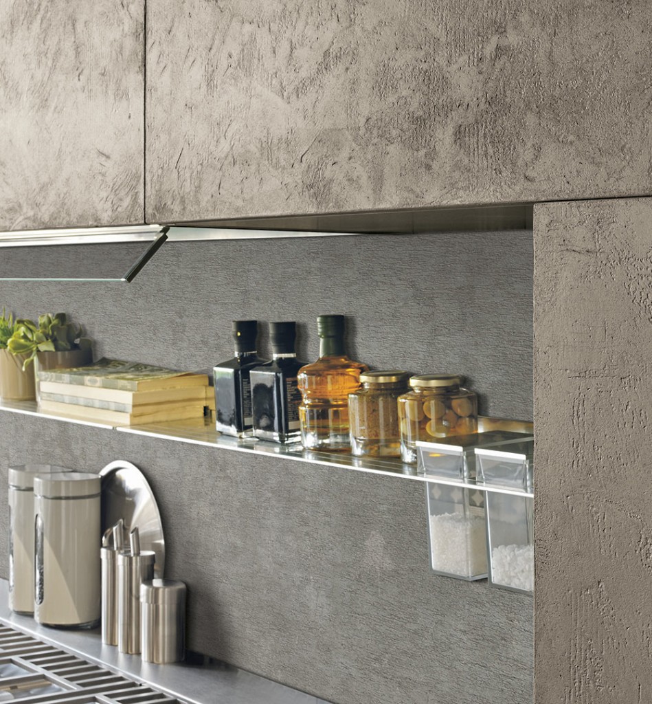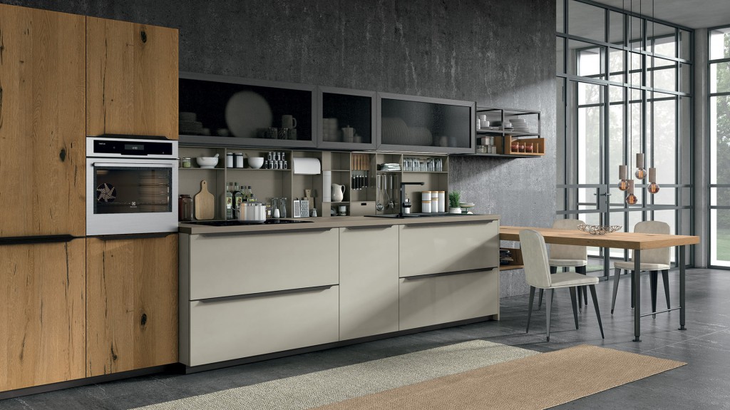 Rigorosa nella sua linearità ma ricca nella sua essenza Oltre presenta, finiture particolari ed accessori che la rendono assolutamente unica nel suo genere. I colori ed i materiali sono tanti e studiati per essere abbinati elegantemente insieme, raffinati e pregiati come le ante realizzate con malta stesa a mano, con effetto cemento, oppure in legno impiallacciato dalla forte tattilità. Caratterizzata dalla meticolosa cura del dettaglio e da un’ampia modularità, Oltre diventa protagonista anche nello spazio living e dining con esclusive soluzioni arredative di design.