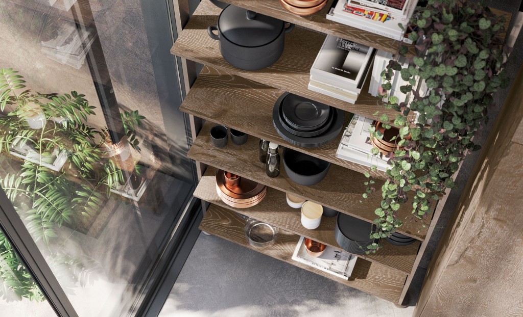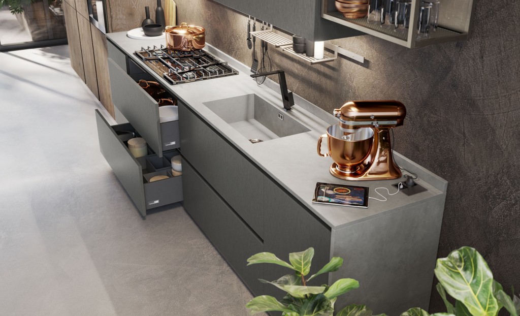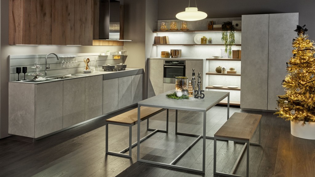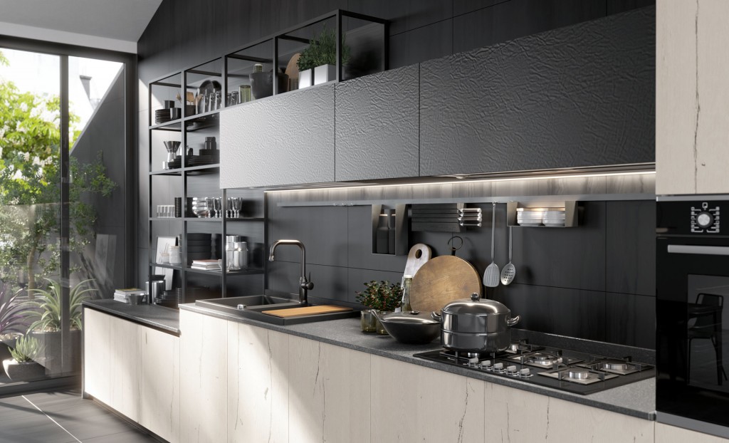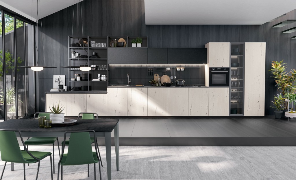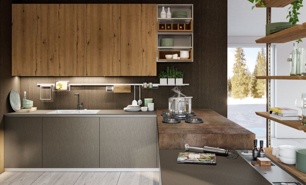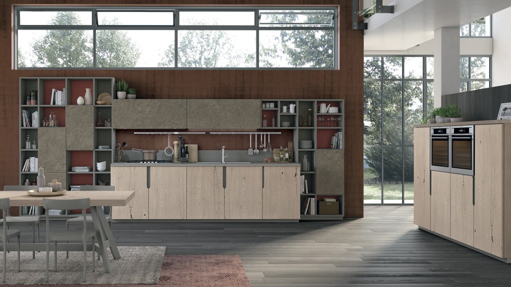 Rigorosa nella sua linearità ma ricca nella sua essenza Oltre presenta, finiture particolari ed accessori che la rendono assolutamente unica nel suo genere. I colori ed i materiali sono tanti e studiati per essere abbinati elegantemente insieme, raffinati e pregiati come le ante realizzate con malta stesa a mano, con effetto cemento, oppure in legno impiallacciato dalla forte tattilità. Caratterizzata dalla meticolosa cura del dettaglio e da un’ampia modularità, Oltre diventa protagonista anche nello spazio living e dining con esclusive soluzioni arredative di design.