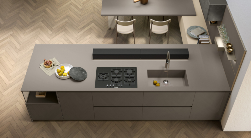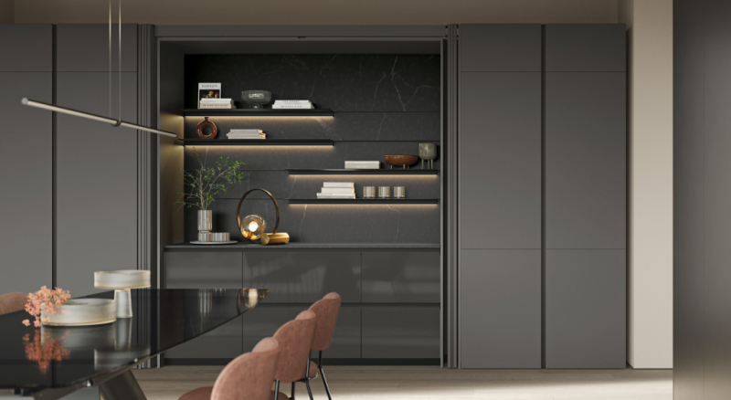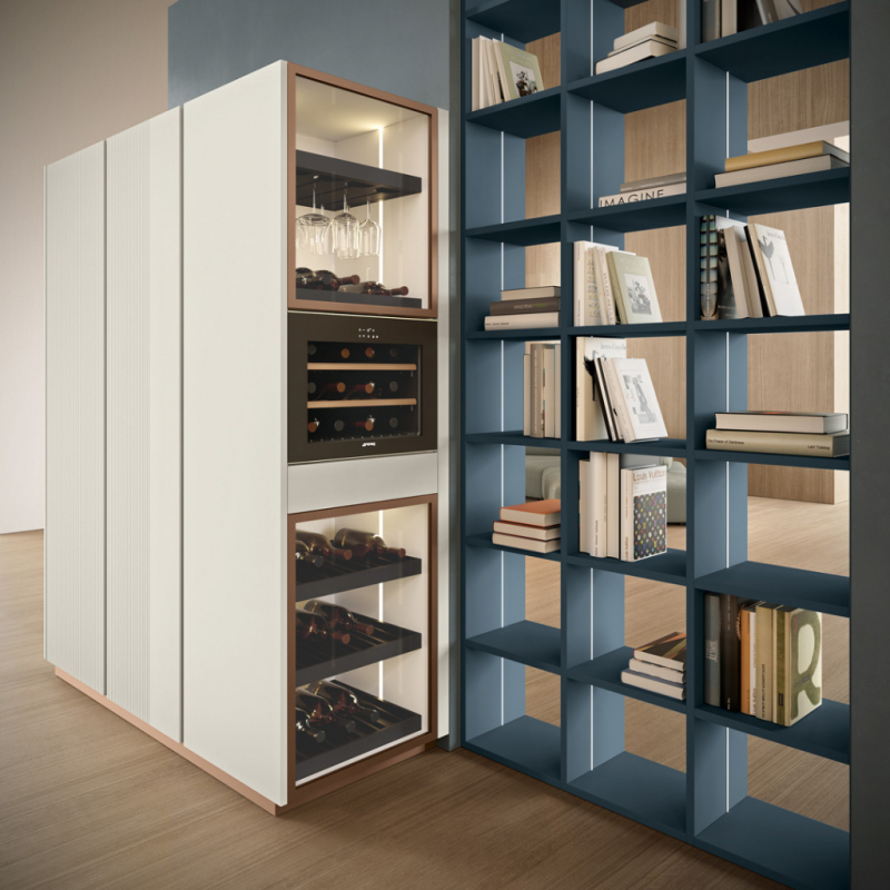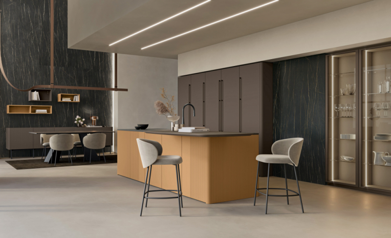 La cucina Shade Lab di Lube è un modello di cucina moderna e sofisticata, caratterizzata da un design modulare, linee pulite e finiture ricercate come le ante laccate super opache con texture effetto trama o le ante lisce. Offre un'elevata personalizzazione grazie al sistema modulare e alle diverse opzioni di ante curve, Rain e Rain Mix, e vetrine illuminate. Shade Lab unisce estetica e funzionalità, proponendo soluzioni come isole centrali e il sistema MASK per un effetto minimale, puntando a creare un ambiente conviviale e personalizzato.