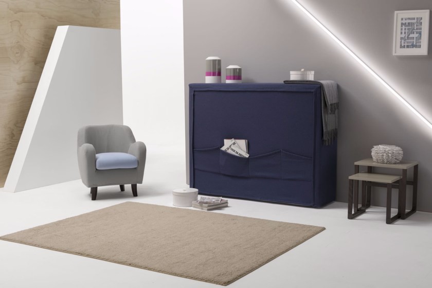 Pagetto è un letto imbottito sfoderabile in tessuto a scomparsa.