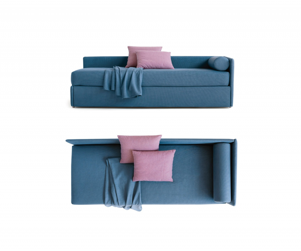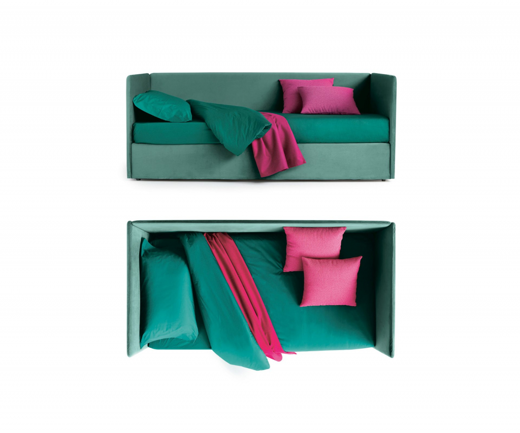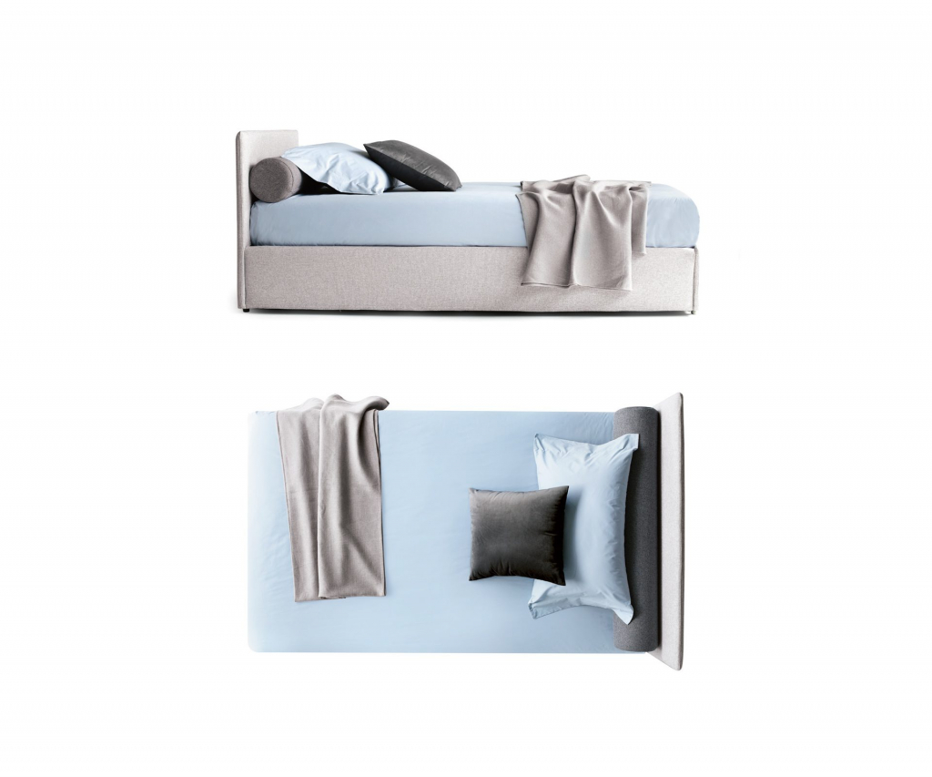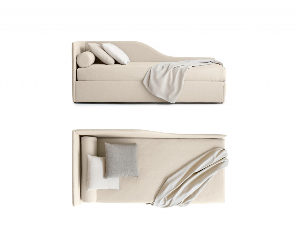 L’attenzione alla trasformazione è una caratteristica di progetto identitaria di Noctis che in Space assume il suo aspetto più evidente. Un oggetto di arredo della zona notte di forma basica – il sommier, un letto senza testiera e pediera – viene sviluppato in una vasta serie di altre configurazioni:prima di tutto come letto con testiera, che diventa dormeuse acquistando anche una spalliera opposta, e una volta acquisito il gioco delle integrazioni, con un breve passaggio in una sponda ad angolo, diventa un divano a tutti gli effetti per poi continuare a giocare con l’altezza e forma delle sponde e le conseguenti forme e funzioni.