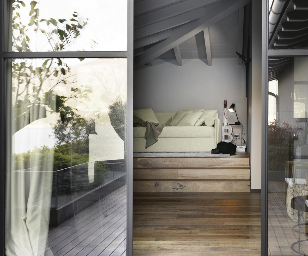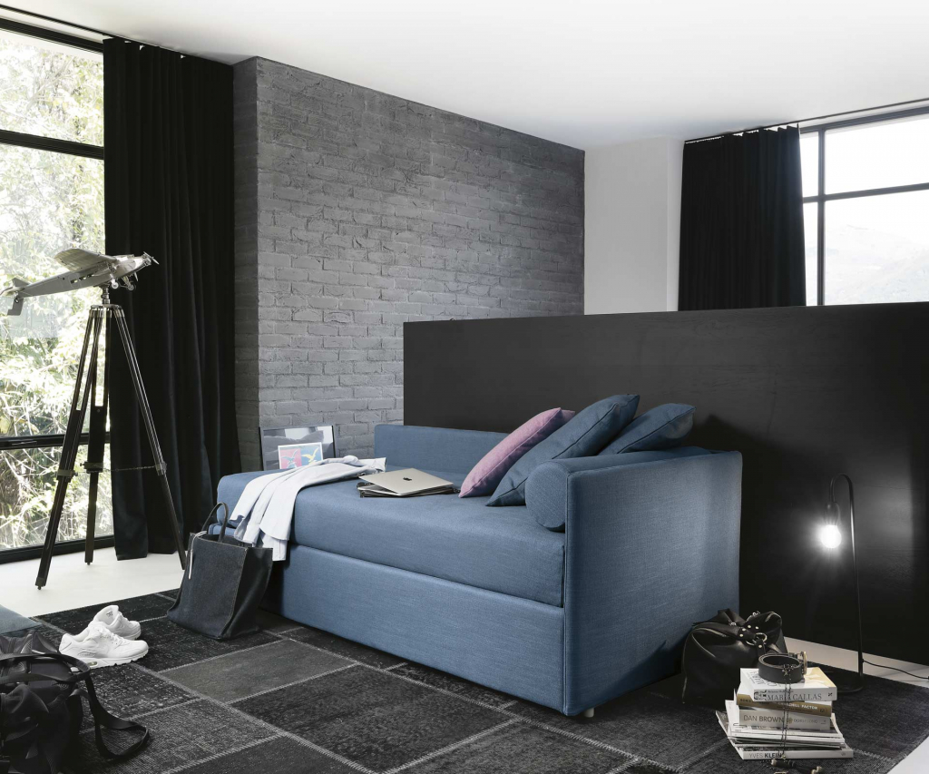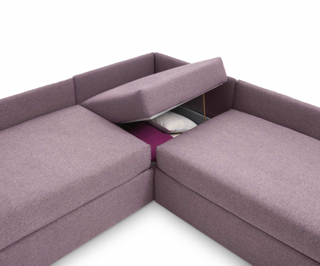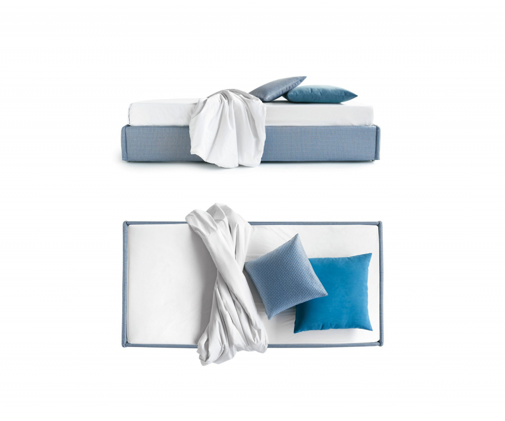 L’attenzione alla trasformazione è una caratteristica di progetto identitaria di Noctis che in Space assume il suo aspetto più evidente. Un oggetto di arredo della zona notte di forma basica – il sommier, un letto senza testiera e pediera – viene sviluppato in una vasta serie di altre configurazioni:prima di tutto come letto con testiera, che diventa dormeuse acquistando anche una spalliera opposta, e una volta acquisito il gioco delle integrazioni, con un breve passaggio in una sponda ad angolo, diventa un divano a tutti gli effetti per poi continuare a giocare con l’altezza e forma delle sponde e le conseguenti forme e funzioni.
